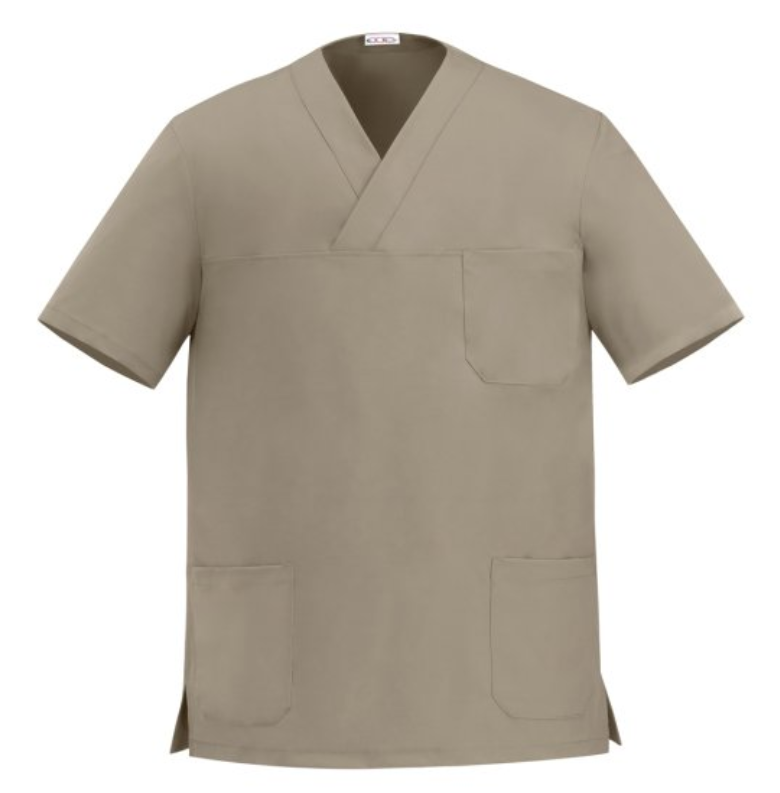 Bluza medyczna z krótkim rękawem oraz otwartym dekoltem z przeszyciem w serek. Model wyposażony jest w dwie kieszenie na biodrach oraz jedną na klatce piersiowej, co zapewnia wygodę i funkcjonalność podczas pracy. Dodatkowe rozcięcia po bokach zwiększają swobodę ruchów i komfort noszenia przez cały dzień. Fason unisex sprawia, że bluza doskonale sprawdzi się zarówno dla Pań, jak i Panów.