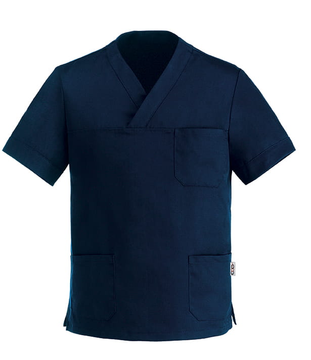 Bluza medyczna w kolorze granatowym, z krótkim rękawem oraz otwartym dekoltem i przeszyciem w serek. Posiada dwie kieszenie na biodrach oraz jedną na klatce piersiowej. Atutem bluzy są dwa dolne otwory po bokach, które zapewniają komfort w noszeniu. Bluza dedykowana jest zarówno dla Pań, jak i Panów. Bluza została uszyta z najlepszych tkanin, dzięki czemu łączy w sobie funkcjonalność i wytrzymałość. Produkt wykonany jest w 65% z poliestru i w 35% z bawełny. Bluza medyczna unisex dostępna jest w rozmiarach od XS do XXXL. EGO CHEF - włoska marka z gwarancją najwyższej jakości oferuje odzież roboczą dla profesjonalistów zajmujących się sektorem zdrowia, takich jak lekarze, chirurdzy, pielęgniarki, czy dentyści.