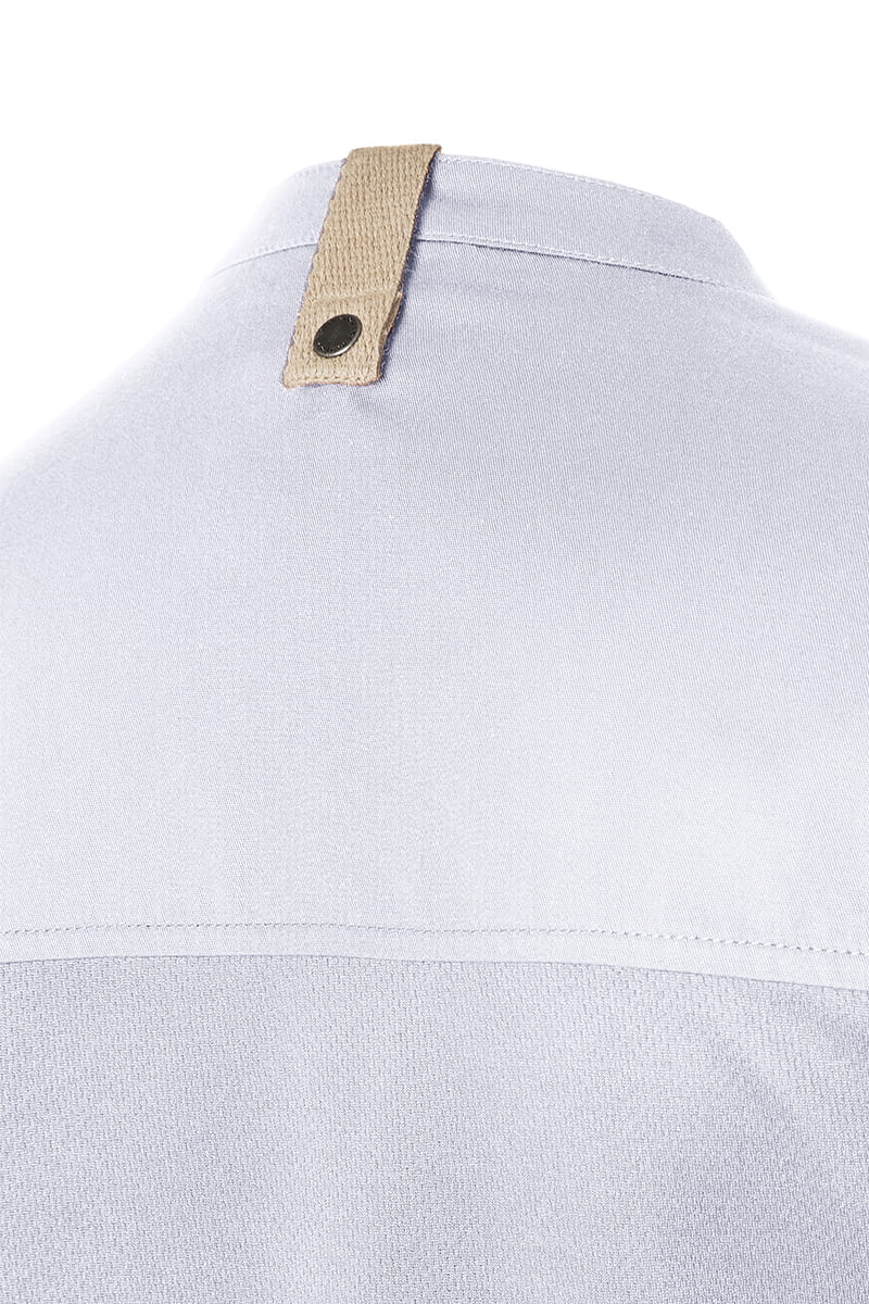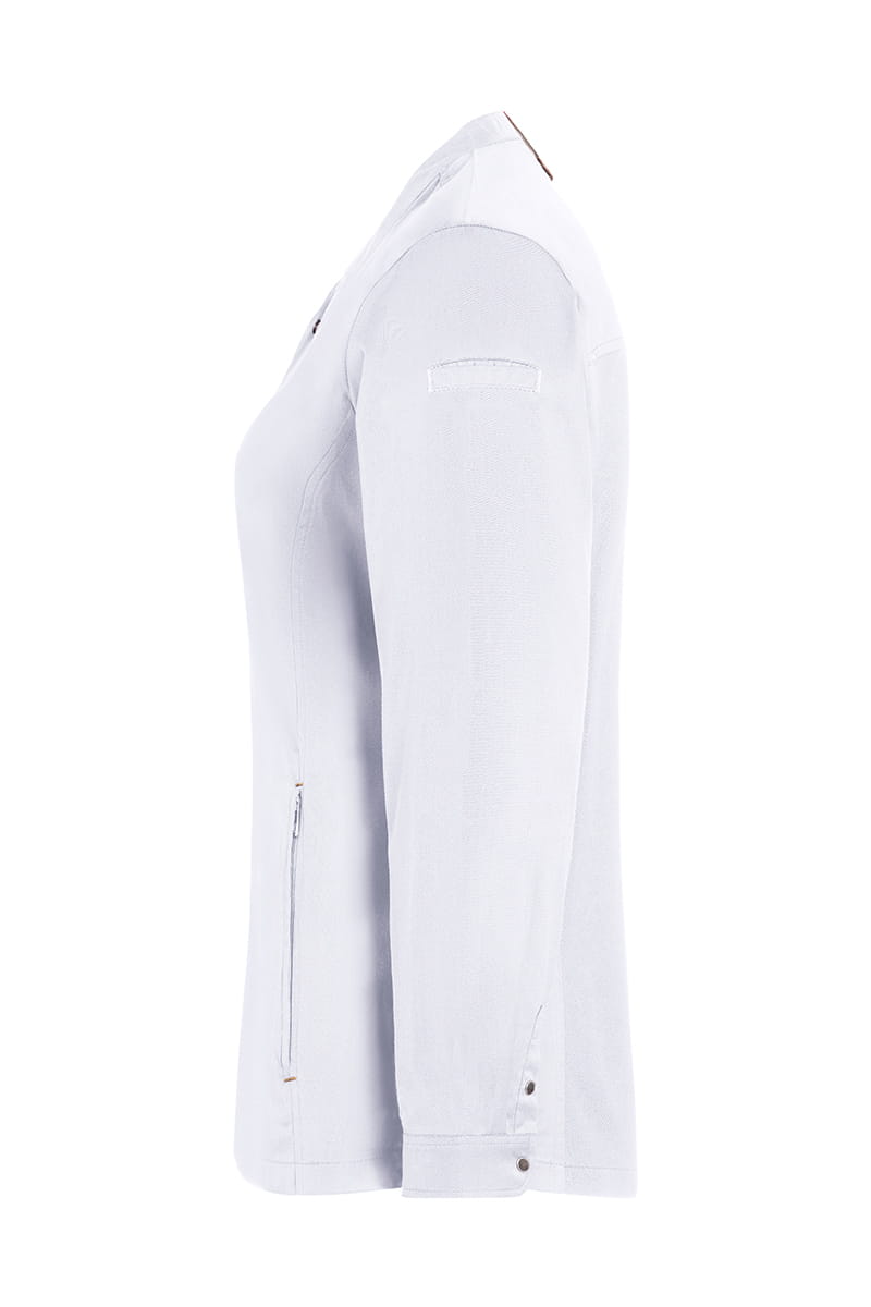 Damska bluza kucharska marki Karlowsky z kolekcji Green Generation o nowoczesnym kroju. Bluza posiada lekko zwężany krój, w tyle z dżersejową wkładkę zapewniającą wentylację oraz większą swobodę ruchów. Przód zapinany jest na zatrzaski, kieszenie na zamek. Dodatkowa, praktyczna kieszonka znajduje się na lewym rękawie. Charakteru dodają bluzie kontrastowe tasiemki na rękawach oraz pod szyją. Ekologiczna bluza łączy miejski styl z naturalnością. Model bluzy dostępny jest w kilku kolorach.