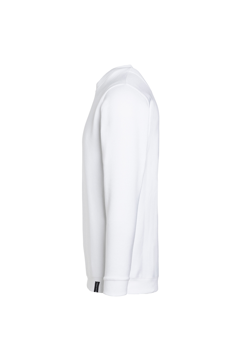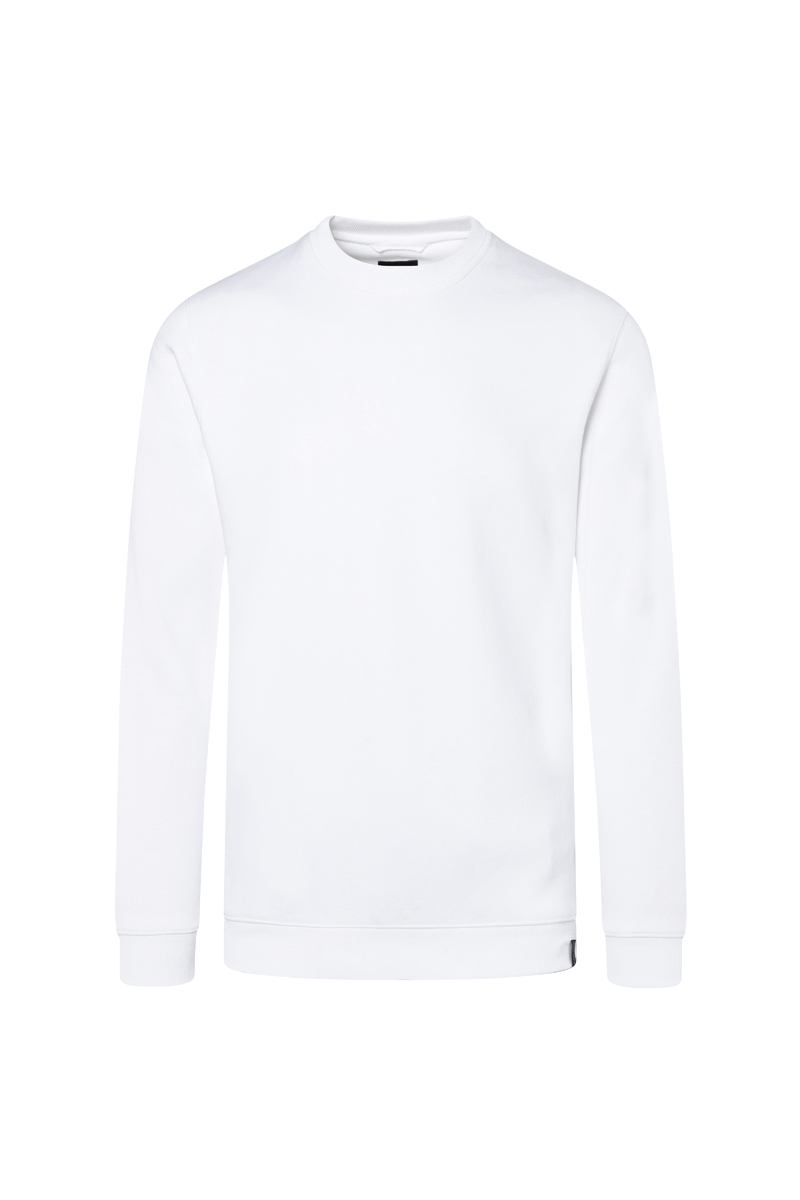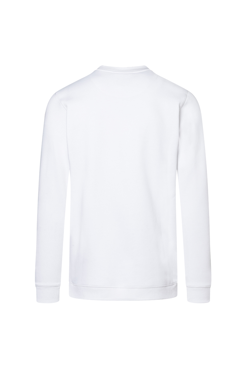 Wewnętrzna, miękka i lekko drapana struktura zapewnia odpowiedni komfort cieplny, co czyni bluzę dobrym wyborem do pracy w chłodniejszych warunkach. Klasyczny okrągły dekolt oraz elastyczne ściągacze przy szyi, rękawach i dole gwarantują stabilne dopasowanie i wygodę przez cały dzień.