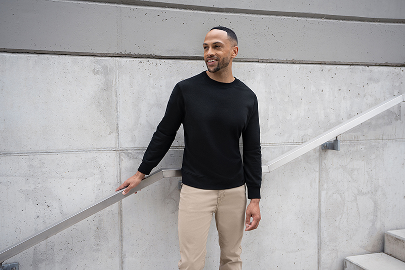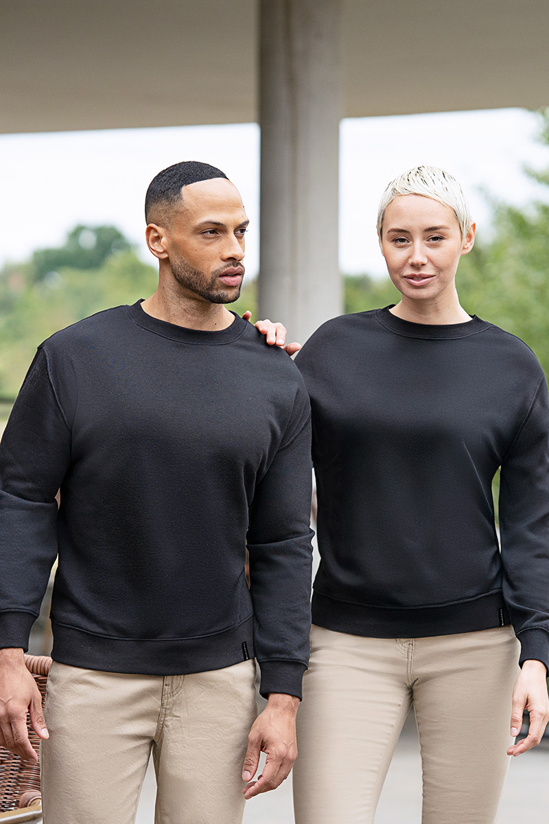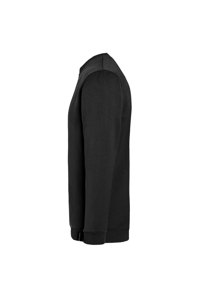 Wewnętrzna, miękka i lekko drapana struktura zapewnia odpowiedni komfort cieplny, co czyni bluzę dobrym wyborem do pracy w chłodniejszych warunkach. Klasyczny okrągły dekolt oraz elastyczne ściągacze przy szyi, rękawach i dole gwarantują stabilne dopasowanie i wygodę przez cały dzień.