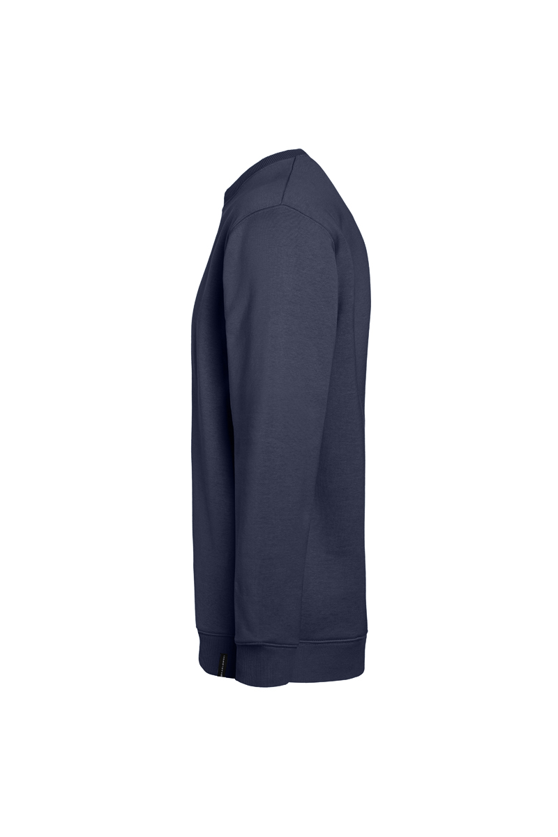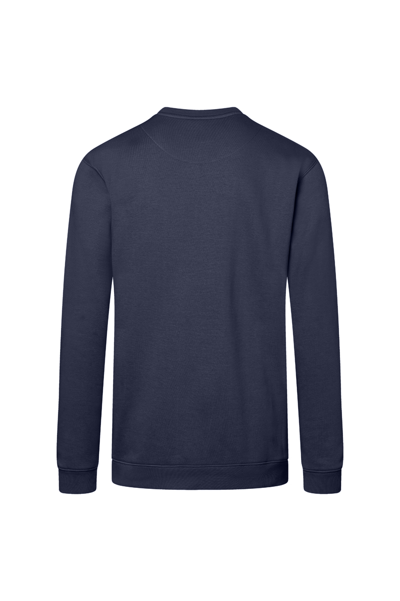 Wewnętrzna, miękka i lekko drapana struktura zapewnia odpowiedni komfort cieplny, co czyni bluzę dobrym wyborem do pracy w chłodniejszych warunkach. Klasyczny okrągły dekolt oraz elastyczne ściągacze przy szyi, rękawach i dole gwarantują stabilne dopasowanie i wygodę przez cały dzień.