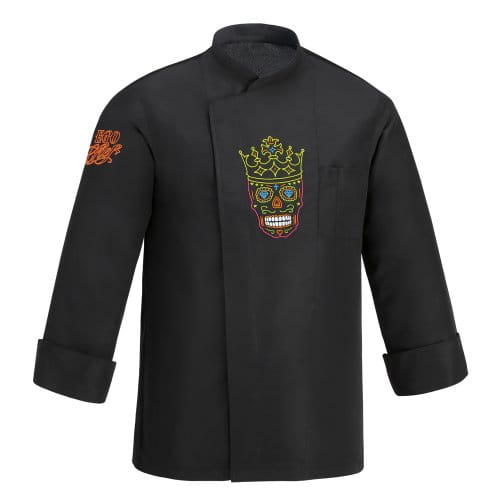 Piękna bluza kucharska z wysokiej jakości tkaniny w kolorze czarnym z efektownym haftem producenta włoskiego EGO CHEF na ramieniu i grafiką. Nadruk nadaje produktowi charakteru. Bluza posiada wywijane mankiety oraz zapięcie na napy. Na ramieniu znajduje się praktyczna kieszeń na długopis. Tył bluzy wykonany z elastycznego i dobrze wentylującego materiału. Bluza nie wymaga prasowania i jest wodoodporna.