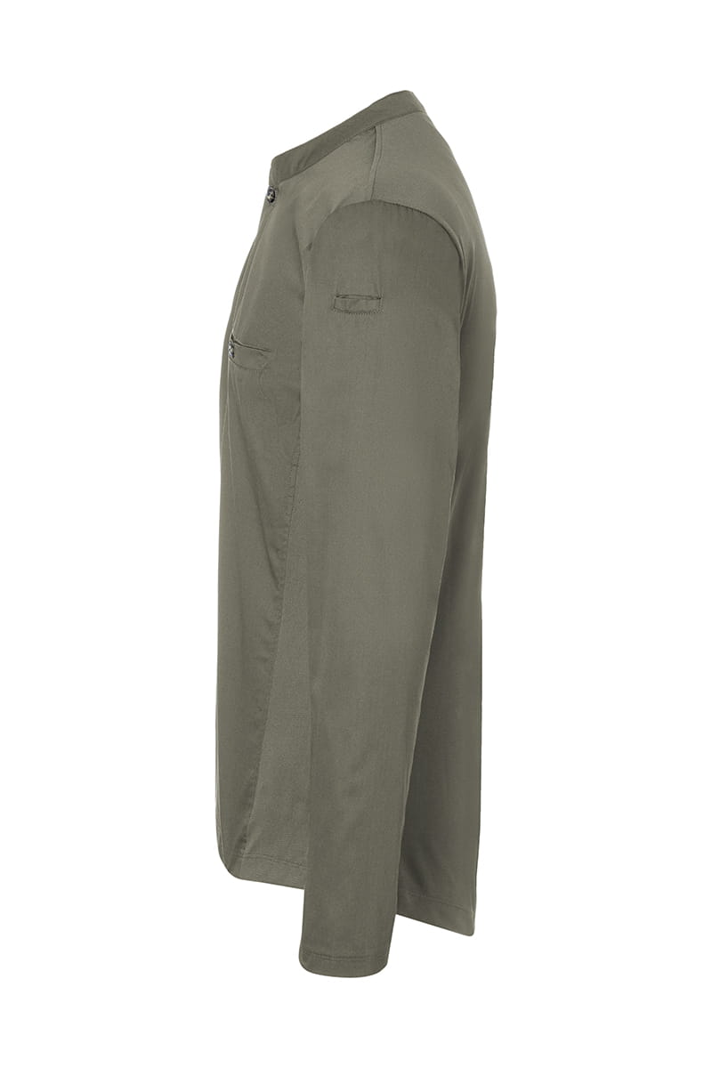 Bluza kucharska UNISEX Lond-Sleeve Work Shirt PERFORMANCE w kolorze szałwia z długim rękawem znanej i cenionej marki KARLOVSKY. Produkt ma nowoczesny; sportowy wygląd dzięki stylowej stójce ozdobionej praktycznym guzikiem. Na wysokości klatki piersiowej projektanci umieścili funkcjonalną kieszeń; która również zapinana jest na oryginalny guzik. Produkt wytworzony jest z poliestru 40% 150 g/m² oraz bawełny 60%; natomiast tył bluzy wykonany jest z jersey'u (drobna siateczka - poliester 100% 150 g/m²); więc pewna jest maksymalna wentylacja. Tkanina ta wykonana została z wysokogatunkowych włókien; dlatego komfort pracy jest zapewniony nawet w wysokich temperaturach. Bluza została zaprojektowana w taki sposób; że idealnie dopasowuje się do każdej sylwetki i jest niezwykle trwała. Ubrania gastronomiczne firmy KARLOWSKY łączą w sobie rewelacyjny wygląd z funkcjonalnością. Ponadto mogą być używane zarówno w restauracjach; jak i w cateringu. Odzież jest trwała i praktyczna.
