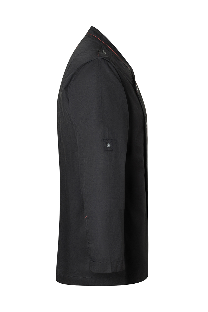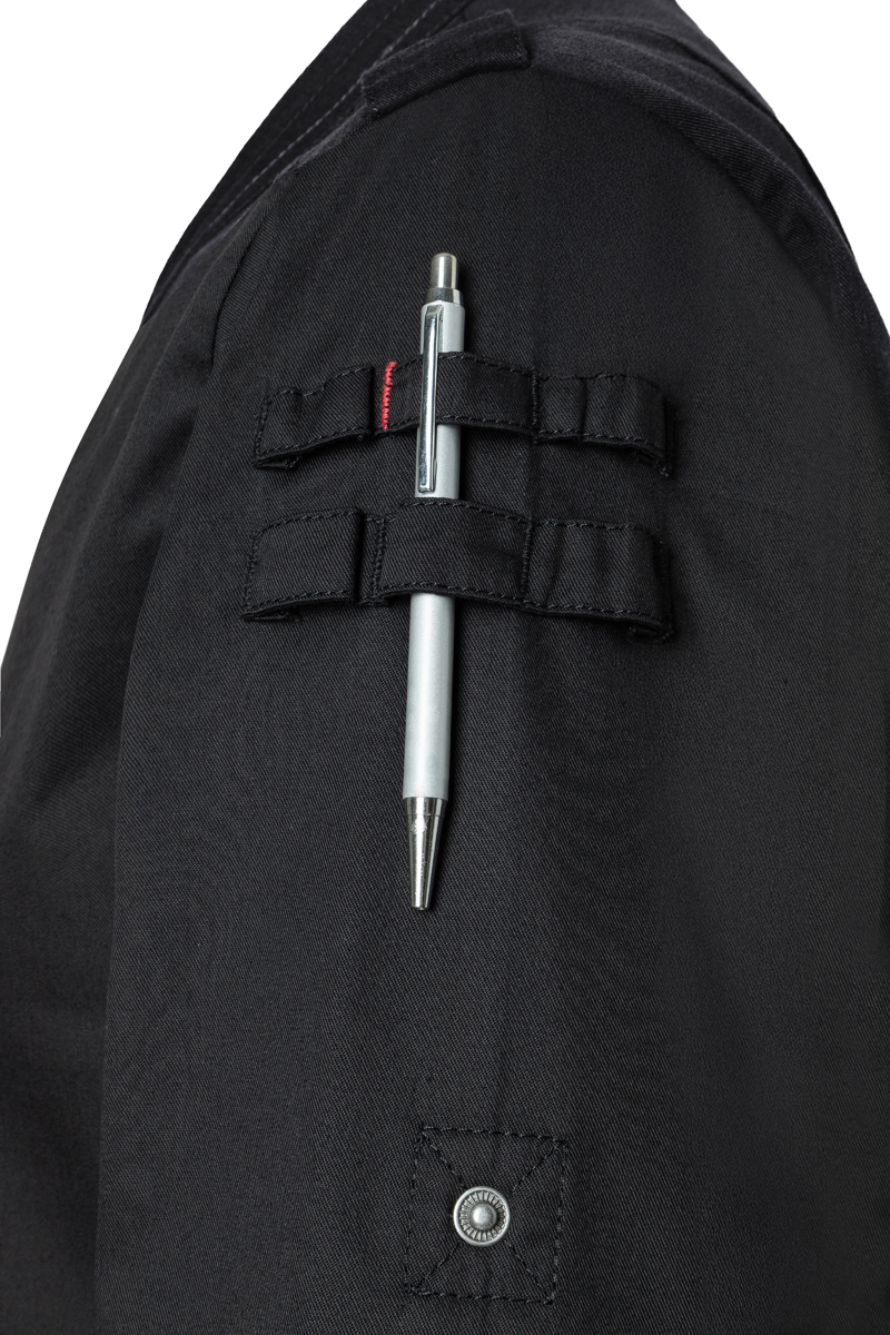 Asymetryczne zapięcie na napy z tłoczeniem ROCK CHEF® umożliwia szybkie zakładanie i zdejmowanie bluzy, a jednocześnie nadaje jej nowoczesny, dynamiczny wygląd. Krój typu regular fit (prosty fason) zapewnia wygodę i swobodę ruchów podczas pracy.