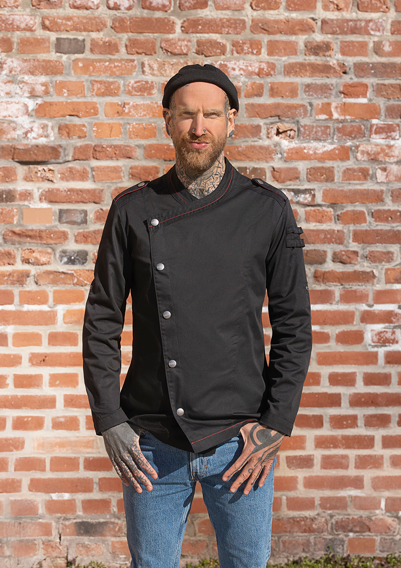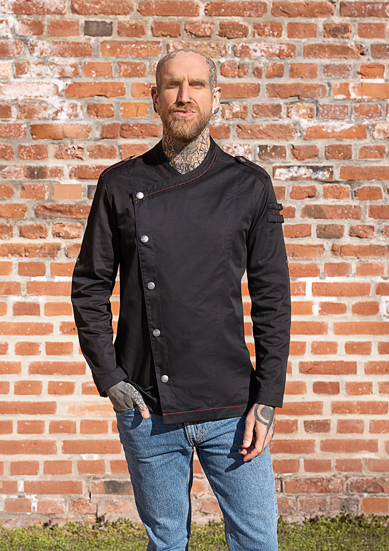 Męska bluza kucharska ROCK CHEF® Stage2 to nowoczesne podejście do klasycznej odzieży gastronomicznej, inspirowane stylem rockowym. Model wyróżnia się oryginalnym designem i dopracowanymi detalami, które podkreślają indywidualny charakter użytkownika.