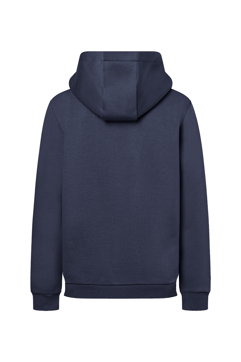 Model wykonany jest z wytrzymałej dzianiny o gramaturze 310 g/m² (65% bawełna, 35% poliester z recyklingu), co gwarantuje trwałość oraz odporność na częste pranie. Wewnętrzna, miękko drapana warstwa materiału zapewnia przyjemne ciepło i komfort termiczny, szczególnie w chłodniejszych warunkach.