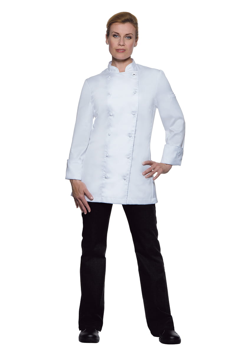 Ekskluzywna damska bluza kucharska DIAMOND CUT w kolorze białym producenta KARLOVSKY to propozycja dla najbardziej wymagających. Bluza o kroju koszuli przyciąga uwagę przez połączenie eleganckiego, unikatowego i nowoczesnego wyglądu. Elementy, które wyróżniają tę bluzę od innych to satynowy materiał, stylowy kołnierzyk i guzik imitujący brylant. Na środku bluzy znajduje się wygodne zapięcie na guziki w dwóch rzędach. Produkt wykonany jest z wysokiej jakości bawełny z dodatkiem satyny. Tkanina ta wykonana została z wysokogatunkowych włókien, dlatego komfort pracy jest zapewniony nawet w wysokich temperaturach. Bluza została zaprojektowana w taki sposób, że idealnie dopasowuje się do każdej sylwetki i jest niezwykle trwała. Ubrania gastronomiczne firmy KARLOWSKY łączą w sobie rewelacyjny wygląd z funkcjonalnością. W dodatku mogą być używane zarówno w restauracjach, jak i w cateringu. Odzież jest trwała i praktyczna.