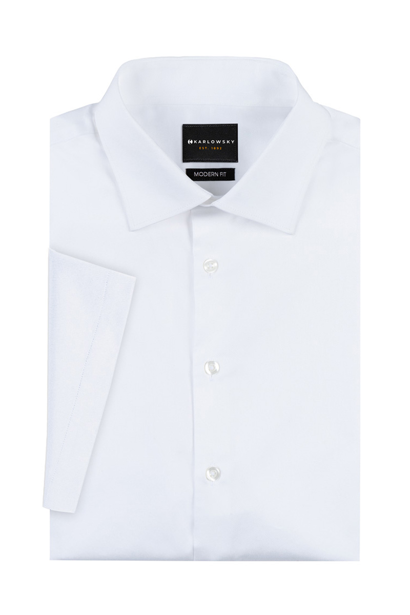 Koszula damska z krótkim rękawem, biała, Modern Fit, KARLOWSKY