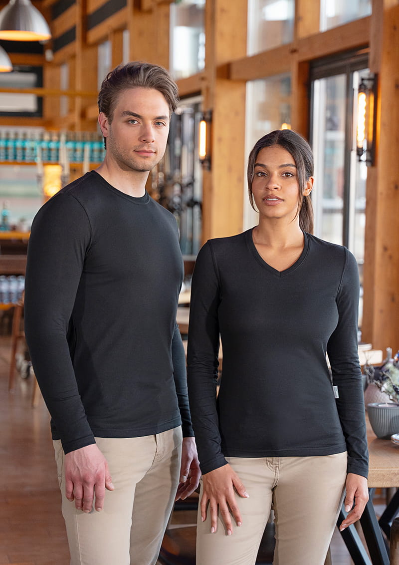 Wszechstronna koszulka z długim rękawem wykonana z przyjemnego w dotyku dżerseju o gramaturze 170 g/m². Połączenie recyklowanego poliestru, bawełny i elastanu zapewnia doskonałą trwałość, wygodę noszenia i swobodę ruchów. Idealna zarówno do zadań zawodowych, jak i w codziennym, casualowym wydaniu.