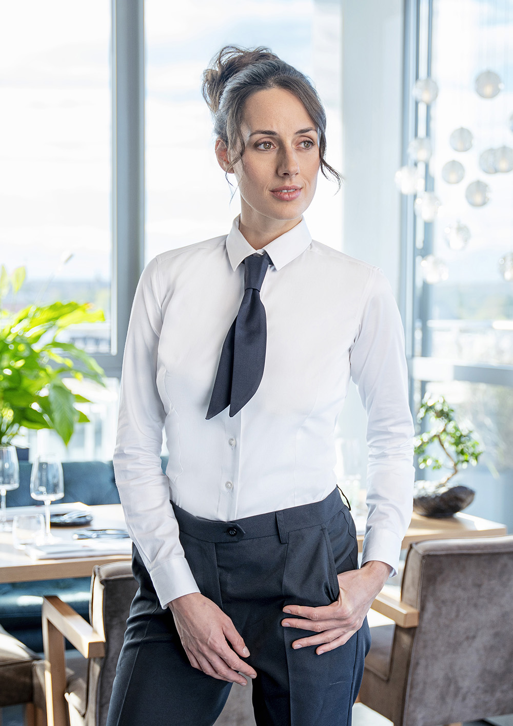 Dzięki klasycznej formie i odpowiednim proporcjom (94 x 5 cm) stanowi estetyczne uzupełnienie stroju personelu, podkreślając profesjonalny wizerunek zespołu.