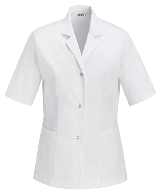 Damski fartuch medyczny w kolorze białym, z krótkim rękawem oraz otwartym dekoltem i klapami, zapinany na napy. Posiada dwie kieszenie na biodrach oraz jedną, małą na rękawku. Atutem fartucha jest dopasowany fason slim fit, dzięki dodatkowym bocznym szwom. Bluza została uszyta z najlepszych tkanin, dzięki czemu łączy w sobie funkcjonalność i wytrzymałość. Produkt wykonany jest w 100% z bawełny. Fartuch damski dostępny jest w rozmiarach od XS do XXL. EGO CHEF - włoska marka z gwarancją najwyższej jakości oferuje odzież roboczą dla profesjonalistów zajmujących się sektorem zdrowia, takich jak lekarze, chirurdzy, pielęgniarki, czy dentyści.
