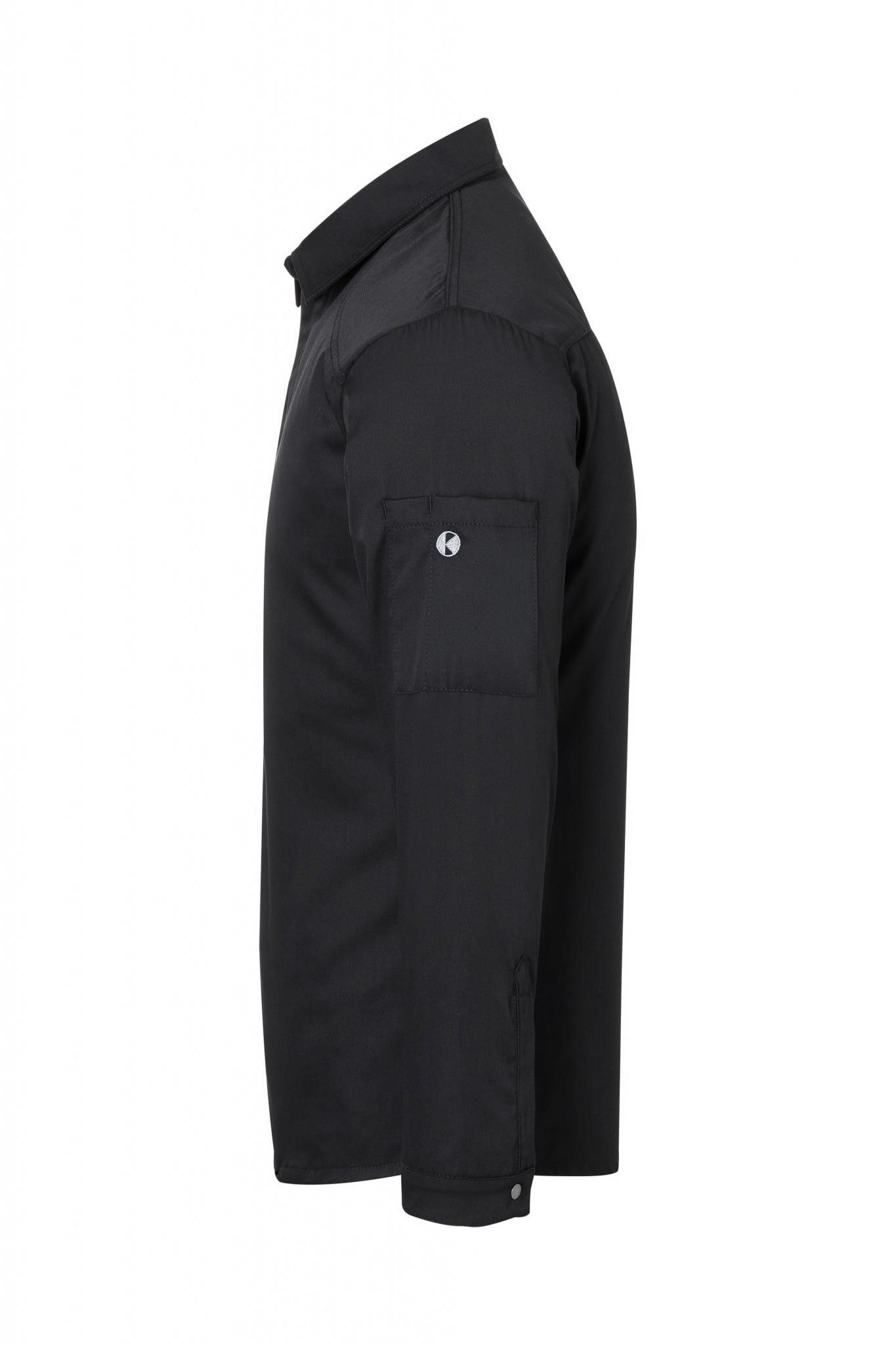 Męska bluza kucharska MODERN EDGE w kolorze czarnym cenionego producenta KARLOVSKY. Bluza posiada wyjątkową formę koszuli, a unikatowa stójka dodaje jej uroku. Zapięcie w formie zatrzasków jest zdecydowanie praktycznym rozwiązaniem. Ponadto na lewym rękawie znajduje się kieszeń na długopis. Produkt wytworzony jest z poliestru 50% oraz bawełny 50% 150 g/m². Tkanina ta wykonana została z wysokogatunkowych włókien, dlatego komfort pracy jest zapewniony nawet w wysokich temperaturach. Bluza została zaprojektowana w taki sposób, że idealnie dopasowuje się do każdej sylwetki i jest niezwykle trwała. Ubrania gastronomiczne firmy KARLOWSKY łączą w sobie rewelacyjny wygląd z funkcjonalnością. W dodatku mogą być używane zarówno w restauracjach, jak i w cateringu. Odzież jest trwała i praktyczna.