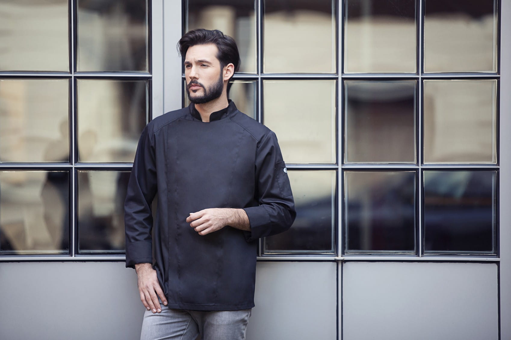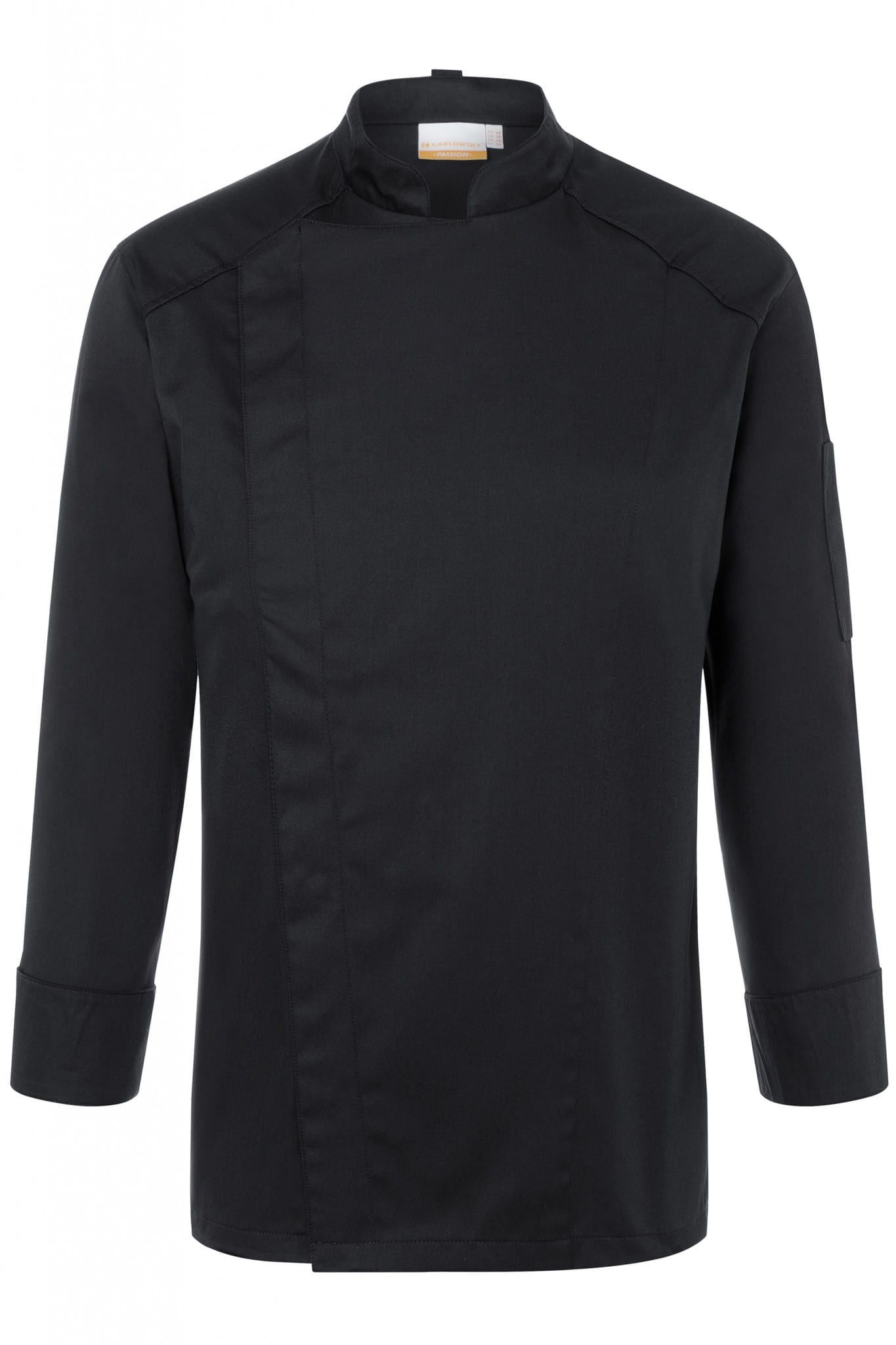 Męska bluza kucharska NOAH firmy KARLOVSKY w kolorze czarnym. Posiada długi rękaw, wywijane, eleganckie mankiety oraz praktyczną kieszonkę na wysokości klatki piersiowej. Zapięcie w formie zatrzasków znajduje się po prawej stronie bluzy i ukryte jest pod panelem materiału. Z tyłu kołnierza umieszczono pasek, którego celem jest zamocowanie fartucha (zapobiega zsuwaniu się). Produkt wytworzony jest z poliestru 50% oraz bawełny 50% 150 g/m². Tkanina ta wykonana została z wysokogatunkowych włókien, dlatego komfort pracy jest zapewniony nawet w wysokich temperaturach. Ponadto idealnie dopasowuje się do każdej sylwetki i jest niezwykle trwała. Ubrania gastronomiczne firmy KARLOWSKY łączą w sobie rewelacyjny wygląd z funkcjonalnością. Ponadto mogą być używane zarówno w restauracjach, jak i w cateringu. Odzież jest trwała i praktyczna.