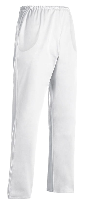 Klasyczne białe spodnie medyczne na gumce, z dwiema kieszeniami po bokach. Produkt wykonany w 100% z bawełny.