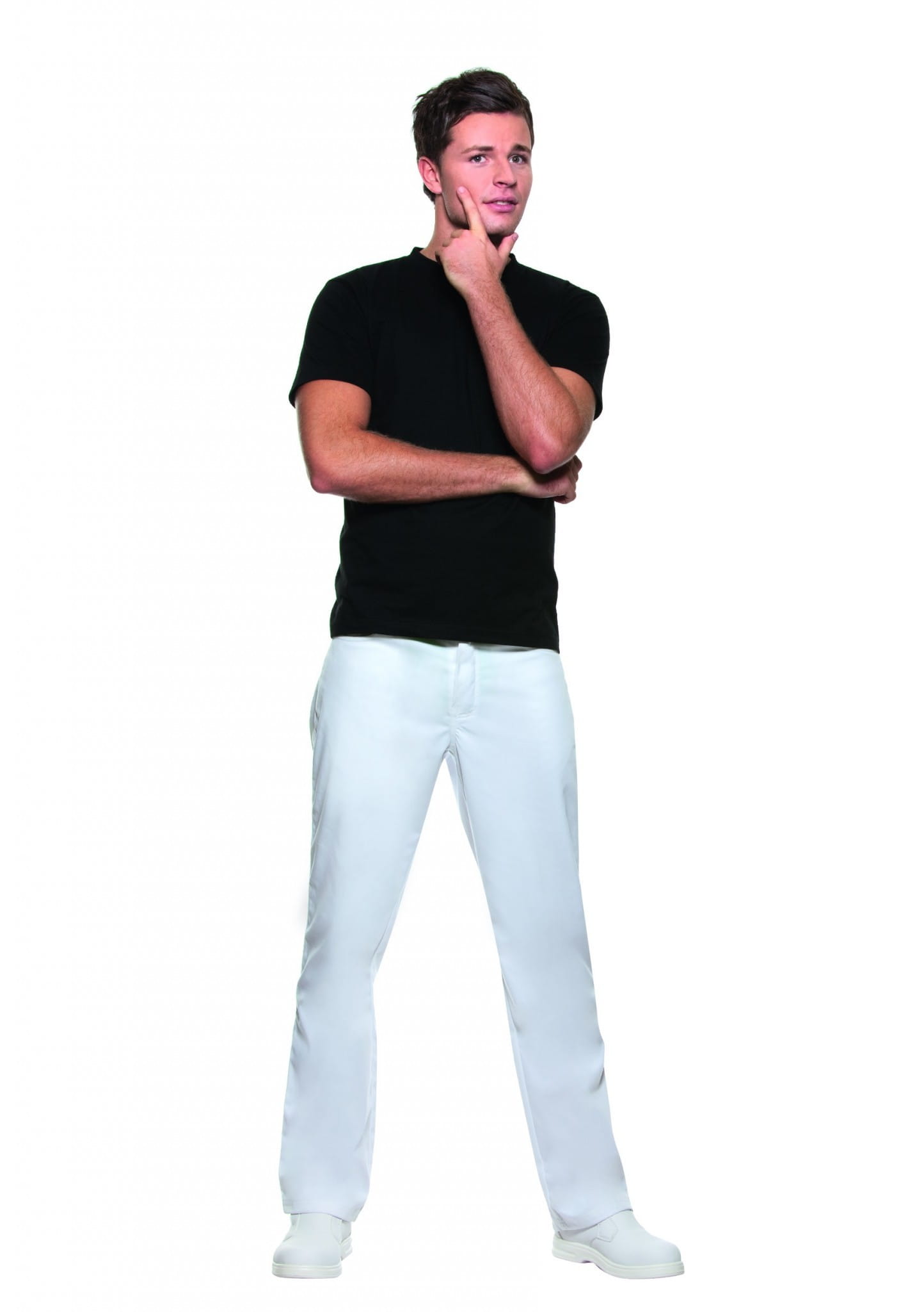 Uniwersalne, klasyczne, gładkie męskiej spodnie w kolorze białym znanej i cenionej marki KARLOVSKY. Wysokiej klasy materiał wykonany z wytrzymałego poliestru (65%) oraz wygodnej bawełny (35%, 245 g/m². Po bokach i z tyłu znajdują się dwie kieszenie. Produkt dopasuje się do każdej sylwetki, gdyż w pasie umieszczono elastyczną gumkę. Spodnie mają uniwersalne zastosowanie - mogą być używane przez wszystkich pracowników branży nie tylko HoReCa, ale będą odpowiednie dla pracowników medycznych. Świetny wygląd połączony z nowoczesnością.