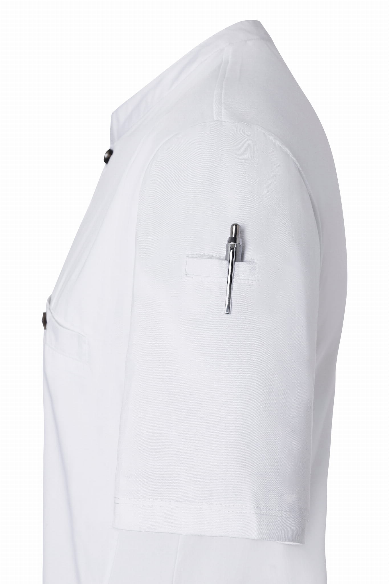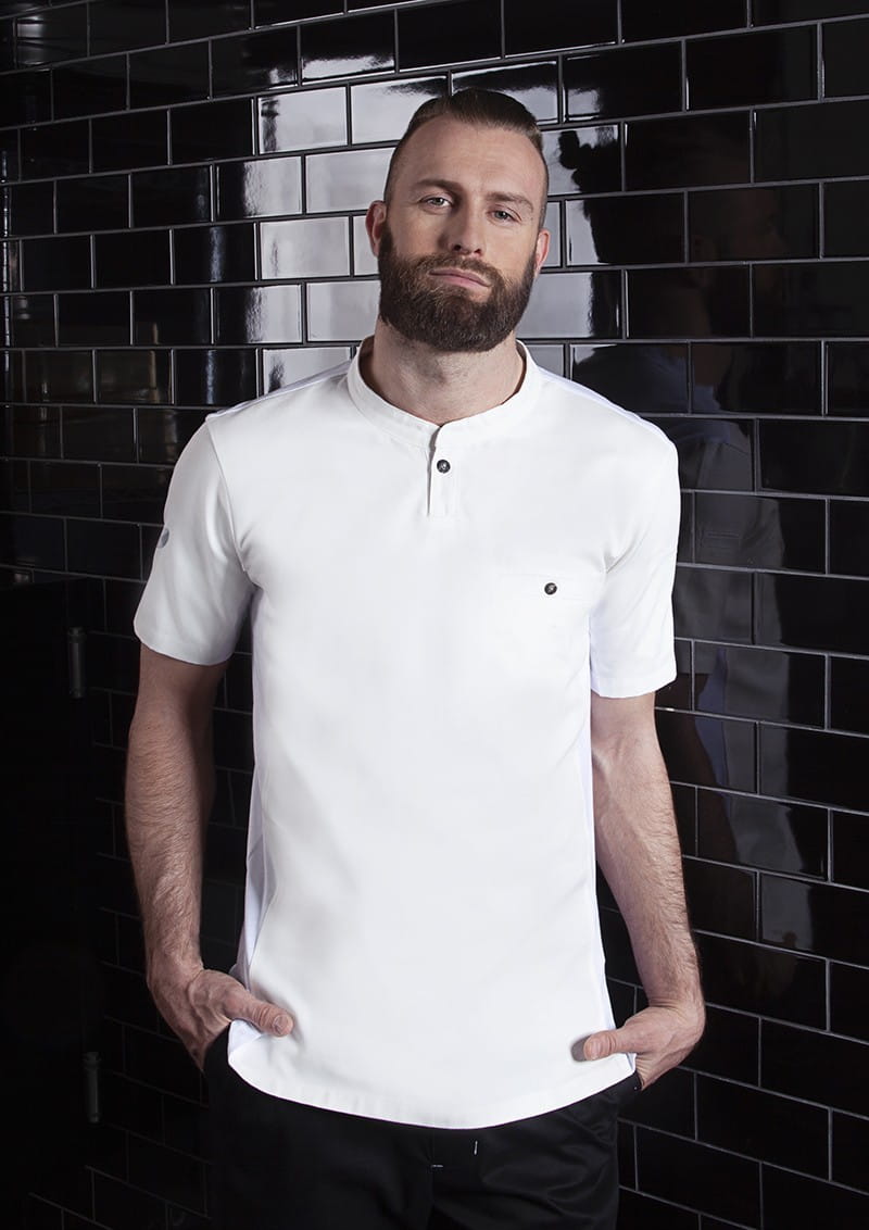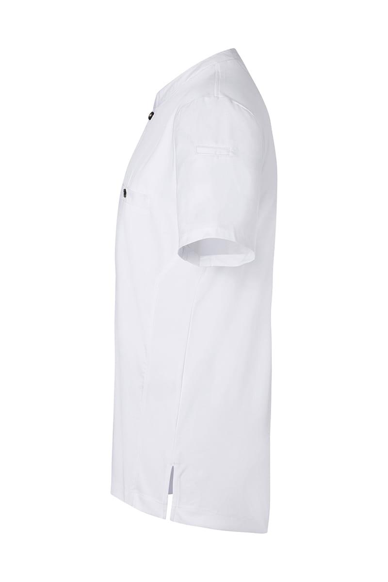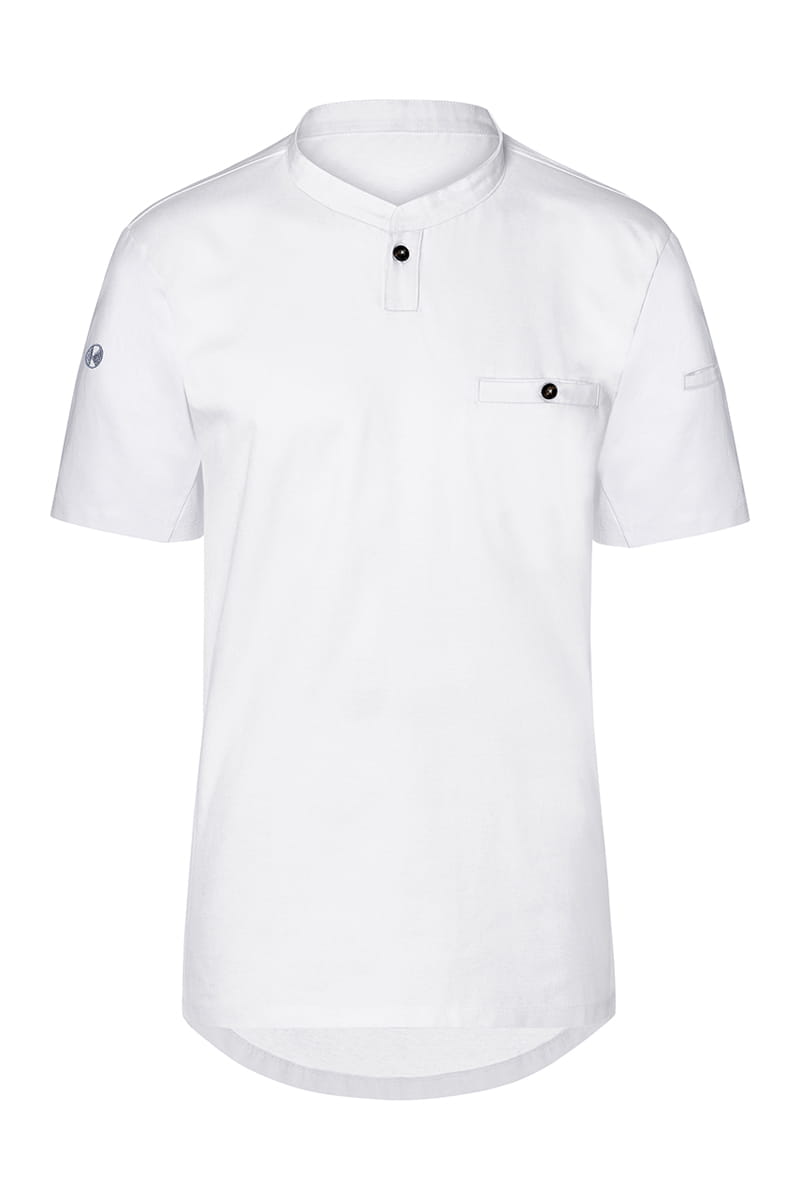 T-shirt kucharski z krótkim rękawem Short-Sleeve Work Shirt Performance to wyjątkowa propozycja producenta KARLOVSKY. Produkt ma nowoczesny, sportowy wygląd dzięki stylowej stójce ozdobionej praktycznym guzikiem. Na wysokości klatki piersiowej projektanci umieścili funkcjonalną kieszeń, która również zapinana jest na oryginalny guzik. Produkt wytworzony jest z poliestru 40% 150 g/m² oraz bawełny 60%, natomiast tył bluzy wykonany jest z jersey'u (drobna siateczka - poliester 100% 150 g/m²), więc pewna jest maksymalna wentylacja. Tkanina ta wykonana została z wysokogatunkowych włókien, dlatego komfort pracy jest zapewniony nawet w wysokich temperaturach. Bluza została zaprojektowana w taki sposób, że idealnie dopasowuje się do każdej sylwetki i jest niezwykle trwała. Ubrania gastronomiczne firmy KARLOWSKY łączą w sobie rewelacyjny wygląd z funkcjonalnością. Ponadto mogą być używane zarówno w restauracjach, jak i w cateringu. Odzież jest trwała i praktyczna.