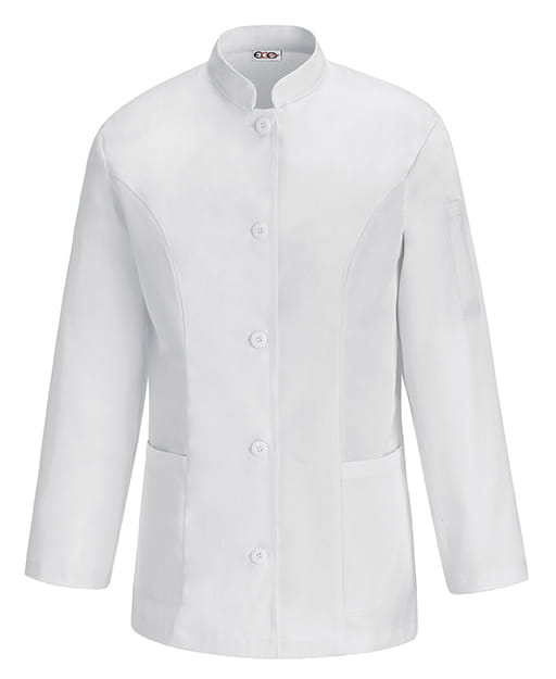 Damski fartuch medyczny w kolorze białym, z długim rękawem oraz kołnierzykiem ze stójką, zapinany na guziki. Posiada dwie kieszenie na biodrach oraz jedną, małą na rękawku. Atutem fartucha jest dopasowany fason slim fit, dzięki dodatkowym bocznym szwom. Bluza została uszyta z najlepszych tkanin, dzięki czemu łączy w sobie funkcjonalność i wytrzymałość. Produkt wykonany jest w 100% z bawełny. Fartuch damski dostępny jest w rozmiarach od XS do XXL. EGO CHEF - włoska marka z gwarancją najwyższej jakości oferuje odzież roboczą dla profesjonalistów zajmujących się sektorem zdrowia, takich jak lekarze, chirurdzy, pielęgniarki, czy dentyści.